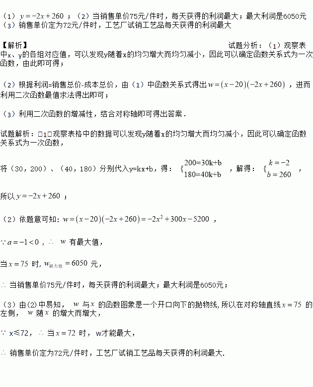 2017年金卉庄园“新春祈福灯会”前夕,我市某工艺厂设计了一款成本为20元/件的工艺品投放市场进行试销,经过调查,得到如下数据: