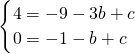解:(1)把(-3,4)、(-1,0)代入y=-x2+bx+c得;