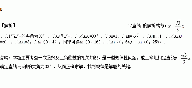 ,过点A(0,1)作y轴的垂线交直线l于点B,过点B作直线l的垂线交y轴于点A1;过点A1作y轴的垂线交直线l于点B1,过点B1作直线l的垂线交y轴于点A2;…;按此作法继续下去,则点A4的坐标为( )