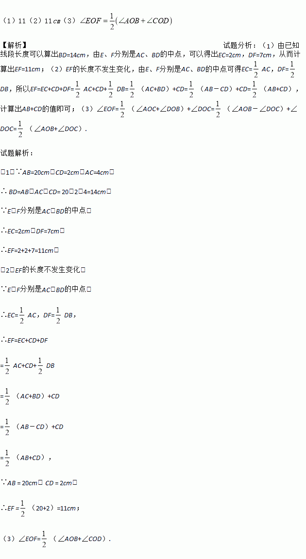 £¨2£©µ±Ïß¶ÎCDÔÚÏß¶ÎABÉÏÔ˶¯Ê±£¬ÊÔÅжÏEFµÄ³¤¶ÈÊÇ·ñ·¢Éú±ä»¯£¿Èç¹û²»±äÇëÇó³öEFµÄ³¤¶È£¬Èç¹û±ä»¯£¬Çë˵Ã÷ÀíÓÉ.