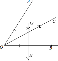 用尺规动手作出∠AOB的角平分线OC,以及OB的垂直平分线MN,并保留作图痕迹.