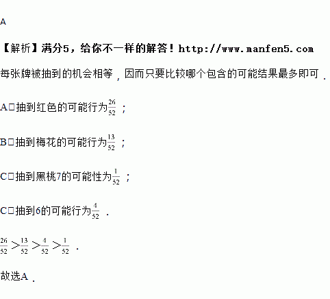 在一副张(没有大小王)的扑克牌中任意抽取张,则下列事件发生的机会最大的是( )