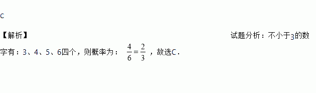 一枚质地均匀的正方体骰子,其六个面分别刻有1、2、3、4、5、6六个数字,投掷这个骰子一次,则向上一面的数字不小于3的概率是( )