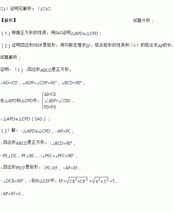 如图,P是正方形ABCD对角线BD上一点,PE⊥DC,PF⊥BC,E、F分别为垂足.