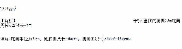 已知某圆锥的底面半径为3cm,母线长6cm,则它的侧面展开图的面积为________.