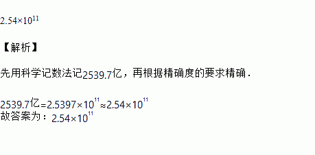 据统计,2017年“双十一”,阿里和京东的销售额达到创记录的2539.7亿元人民币.用科学记数法表示2539.7亿为_____(精确到十亿位)