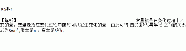 圆的面积s与半径r之间的关系式为S=πr2 , 其中常量是________ ,变量是________