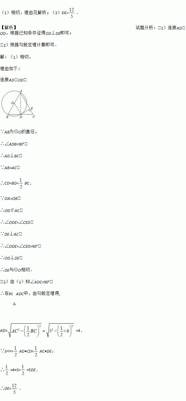 (1)判断直线DE与⊙O的位置关系,并说明理由;
