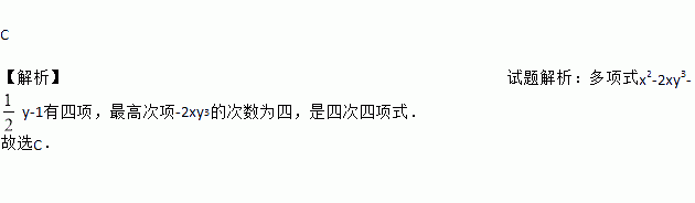 C 【解析】试题解析:多项式x2-2xy3-y-1有四项,最高次项-2xy3的次数为四,是四次四项式. 故选C.