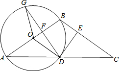 分析:(1)连接BD,OD,求出OD∥BC,推出OD⊥DE,根据切线判定推出即可;