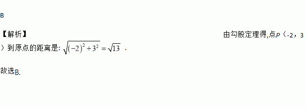 在直角坐标系中,点P(-2,3)到原点的距离是( )
