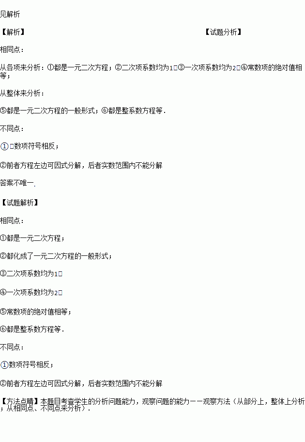 试比较下列两个方程的异同, +2x-3=0, +2x+3=0.