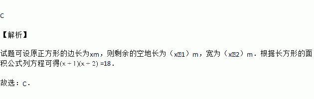 公园有一块正方形的空地,后来从这块空地上划出部分区域栽种鲜花(如图),原空地一边减少了1m,另一边减少了2m,剩余空地的面积为18m2,求原正方形空地的边长.设原正方形的空地的边长为xm,则可列方程为( )