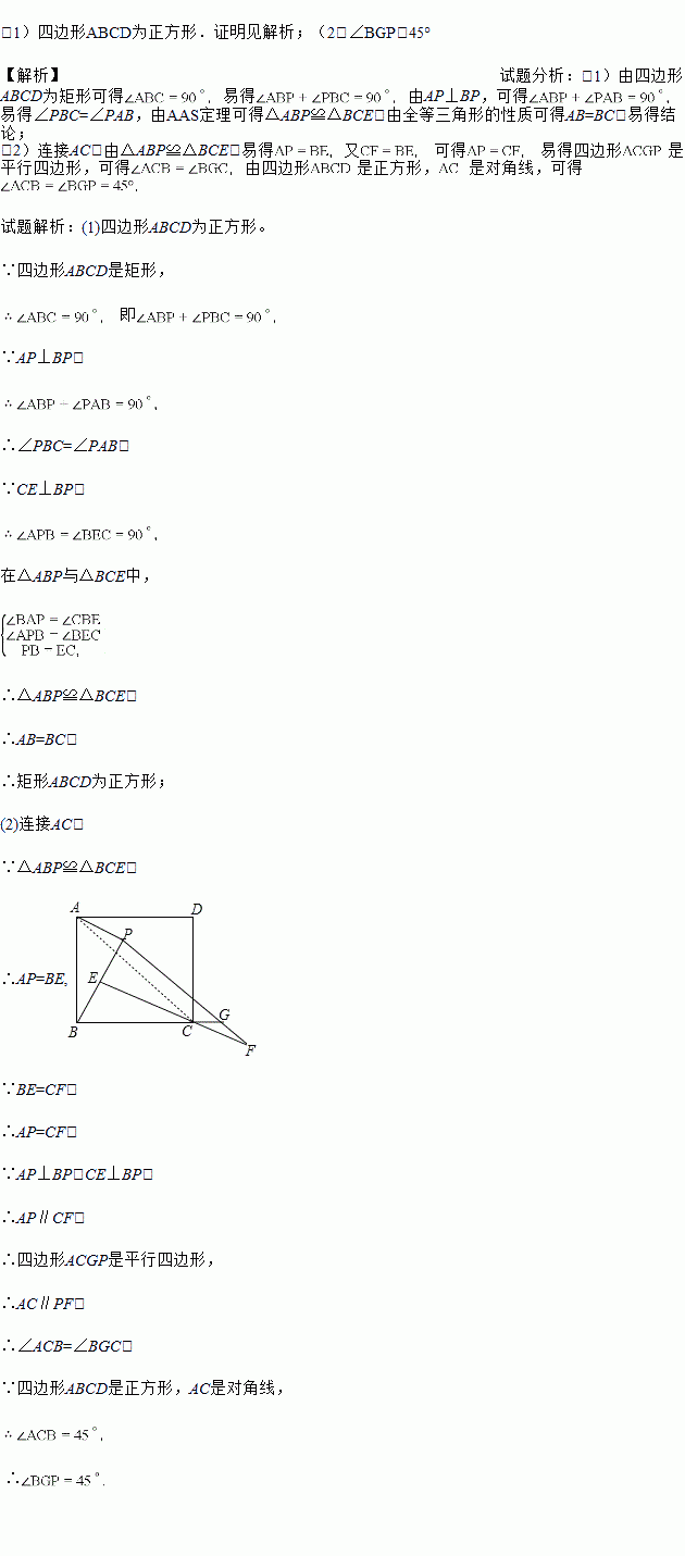 如图,P是矩形ABCD内一点,AP⊥BP于点P,CE⊥BP于点E,BP=EC.