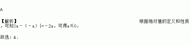 A 【解析】根据绝对值的定义和性质,可知|a﹣(﹣a)|=﹣2a,可得a≤0, 故选:A.