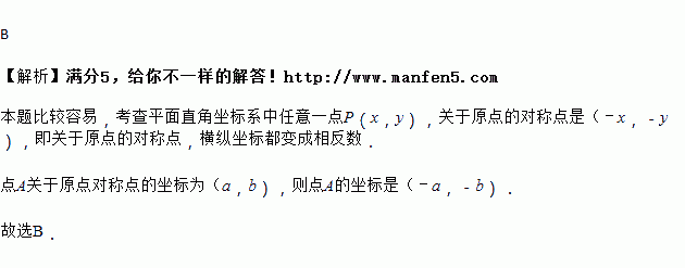 若点关于原点对称点的坐标为,则点的坐标是( )