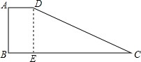 分析:过点D作DE⊥BC于E,先求出四边形ABED是矩形,根据矩形的对边相等可得DE=AB,BE=AD,再求出CE,然后利用勾股定理列式进行计算即可得解.