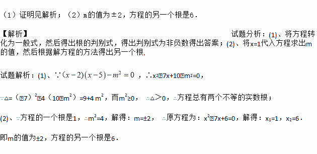 已知关于x的一元二次方程(x﹣2)(x﹣5)﹣m2=0.