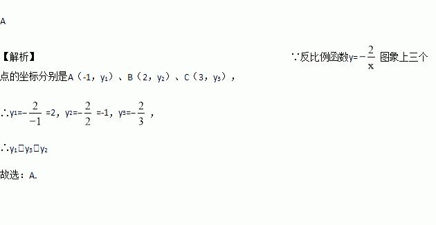 已知点A(-1,y1)、B(2,y2)、C(3,y3)都在反比例函数