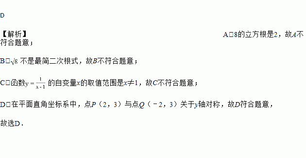 A. 8的立方根是±2 B. 是一个最简二次根式