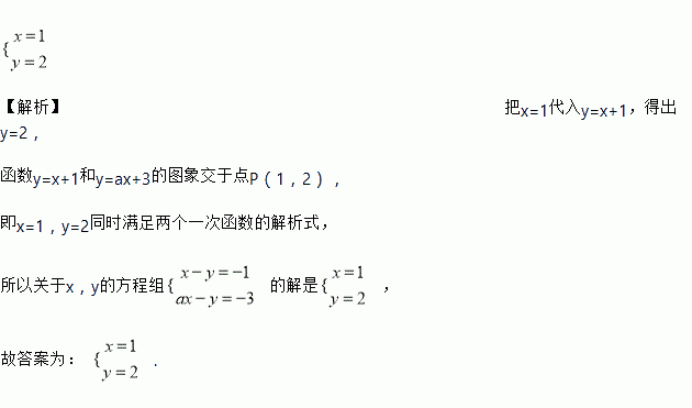 如图,已知函数和图象交于点,点的横坐标为,则关于, 的方程组的解是_____.