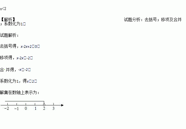 解不等式x-2(x-1)>0,并将它的解集在数轴上表示出来.