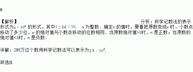 2018年,我国将加大精准扶贫力度,今年再减少农村贫困人口1000万以上,完成异地扶贫搬迁280万人.其中数据280万用科学计数法表示为( )