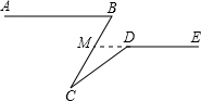 分析:反向延长DE交BC于M,两直线平行,内错角相等,则∠BMD=∠ABC,由邻补角互补可知∠CMD=180°-∠BMD,根据三角形外角和定理,则∠CDE=∠CMD+∠C,即可解答.