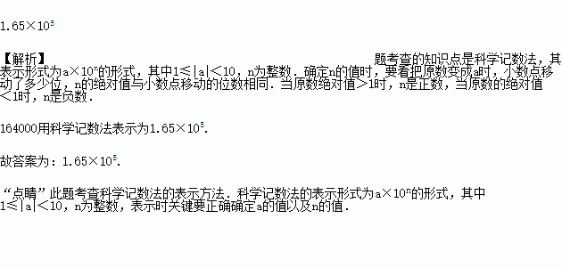 据统计,2017年“五一节”期间,东台黄海森林公园共接待游客164 000人.将164 000用科学记数法表示为________.