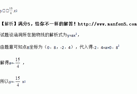 如图,某涵洞的截面是抛物线型,现测得水面宽AB=1.6m,涵洞顶点O到水面的距离CO=2.4m,在图中直角坐标系内涵洞截面所在抛物线的表达式是______________.