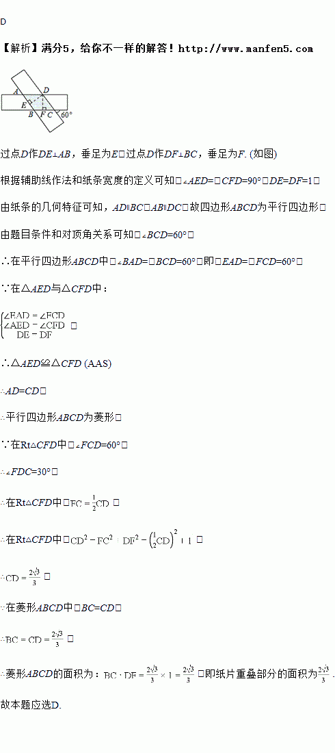如图,小华剪了两条宽为的纸条,交叉叠放在一起,且它们较小的交角为,则它们重叠部分的面积为( )