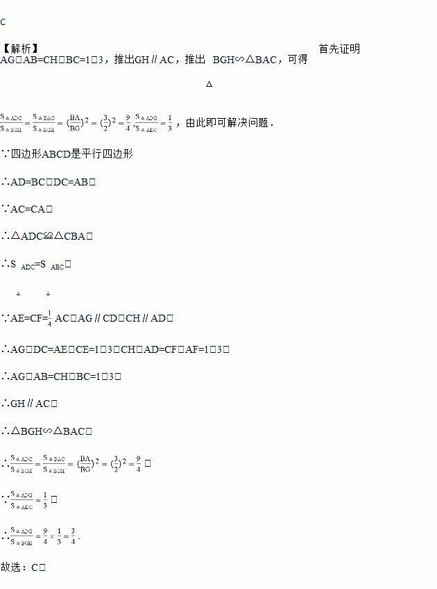 如图,E,F是平行四边形ABCD对角线AC上两点,AE=CF=AC.连接DE,DF并延长,分别交AB,BC于点G,H,连接GH,则的值为( )