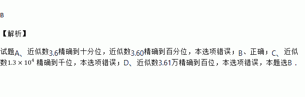D. 近似数3.61万精确到百分位