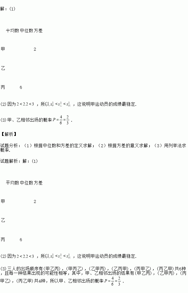 (2)依据表中数据分析,哪位运动员的成绩最稳定,并简要说明理由;