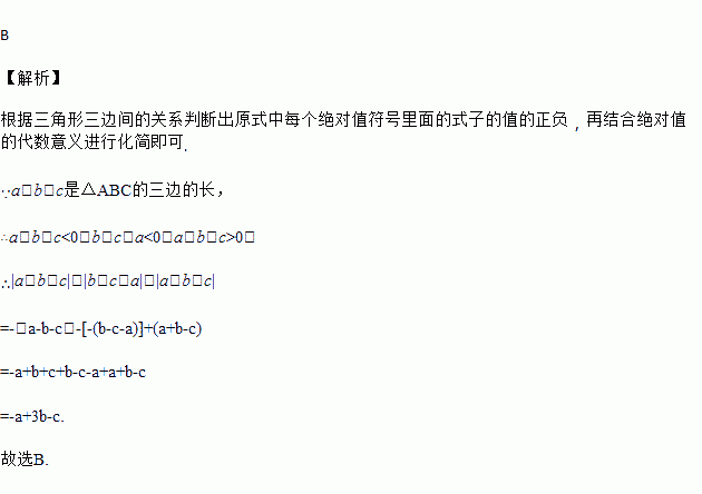 若a,b,c是△ABC的三边的长,则化简|a-b-c|-|b-c-a|+|a+b-c|的结果是( )
