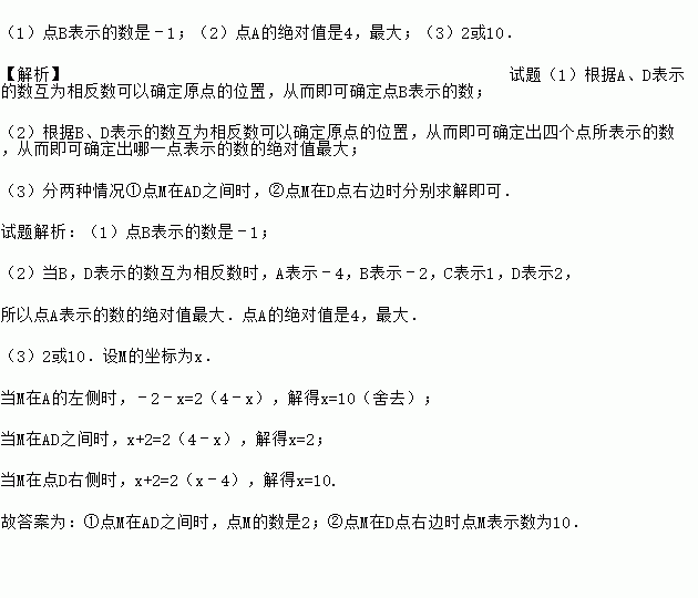 (1)如果点A,D表示的数互为相反数,那么点B表示的数是多少?