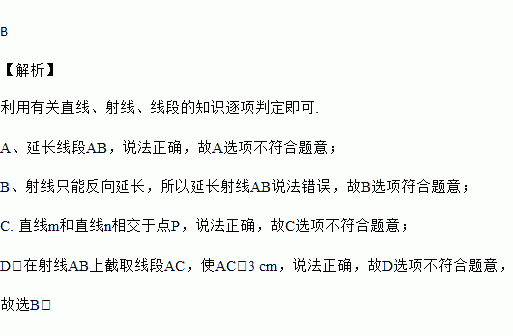 D. 在射线AB上截取线段AC,使AC=3 cm