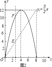 (3)在图2中,点G是x轴正半轴上一点0<OG<6,过G作EF垂直于x轴,分别交y1、y2的图象于点E、F.