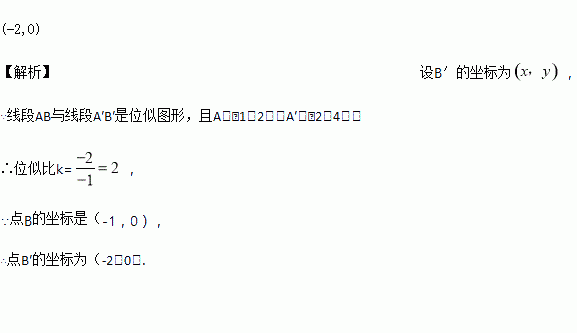 在平面直角坐标系xOy中,以原点为位似中心,线段AB与线段A′B′是位似图形,若A(﹣1,2),B(﹣1,0),A′(﹣2,4),则B′的坐标为__.