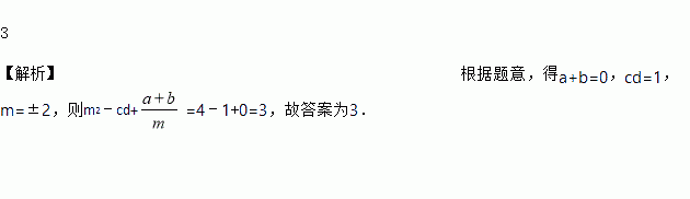 若a、b互为相反数,c、d互为倒数,m的绝对值为2,则代数式m2﹣cd+的值为_____.