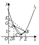 ∵点A(1,2),B(3,1)在抛物线l2上,
