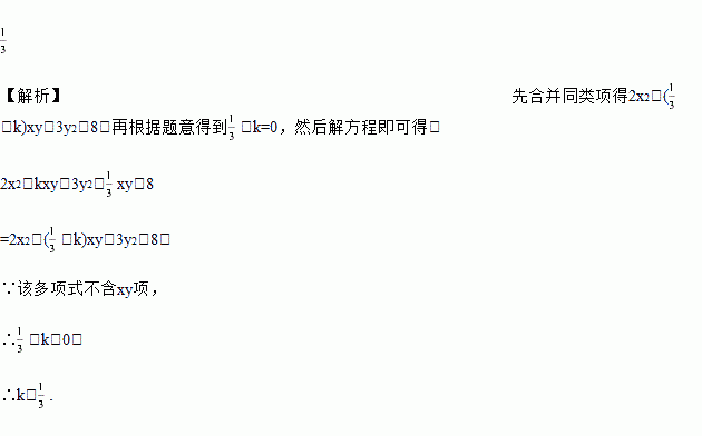 求k为多少时,代数式2x2-kxy-3y2+xy-8中不含xy项.