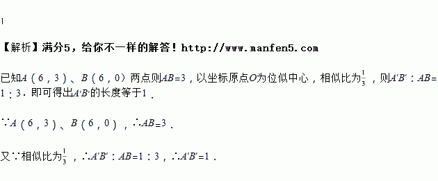 在平面直角坐标系中,已知、两点,以坐标原点为位似中心,相似比为,把线段缩小后得到线段,则的长度等于________.