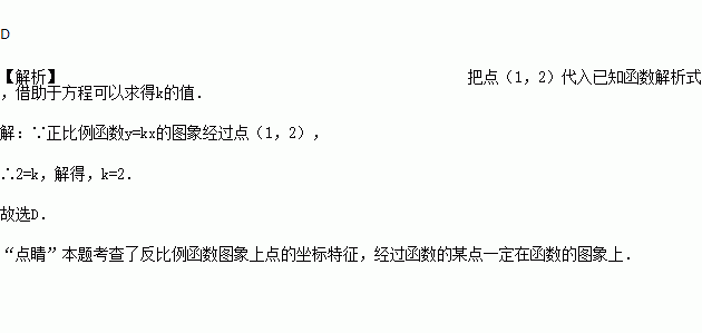 若正比例函数y=kx的图象经过点(1,2),则k的值为( )