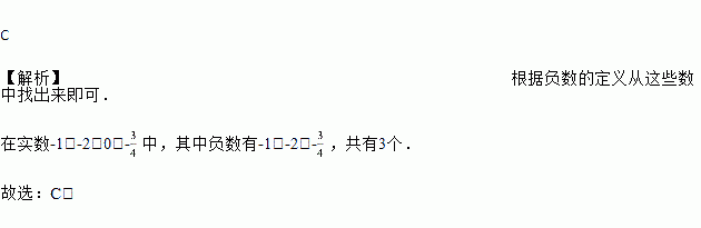中国人很早就开始使用负数,中国古代数学著作《九章算术》的“方程”一章,在世界数学史上首次正式引入负数.在有理数-1,-2,0,-中,负数共有( )