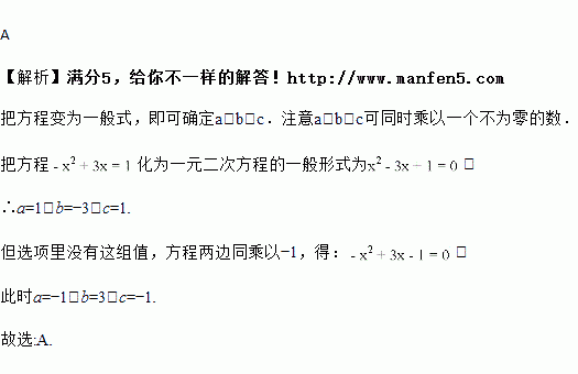 用公式法解时,先求出、、的值,则、、依次为( )