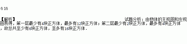 如图:在桌上摆有一些大小相同的正方体木块,其从正面和从左面看到的形状图如图所示,则要摆出这样的图形至少需要________块正方体木块,至多需要________块正方体木块.