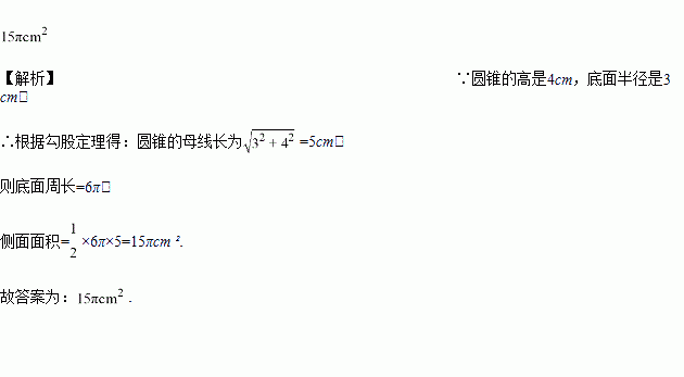 一个圆锥的高为4cm,底面圆的半径为3cm,则这个圆锥的侧面积为_____.