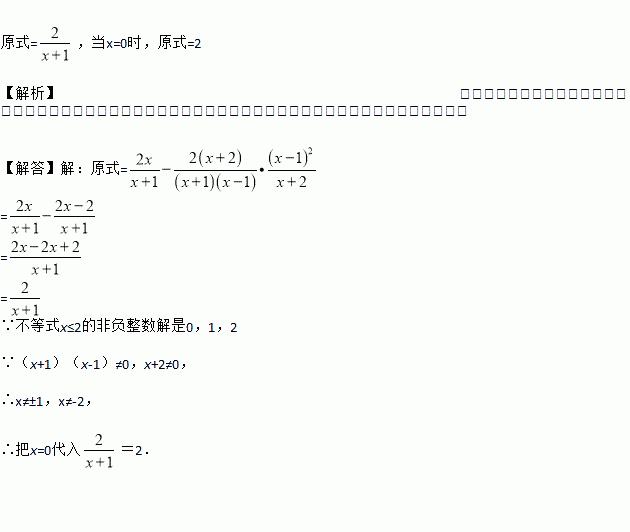 化简: ,然后在不等式的非负整数解中选择一个适当的数代入求值.