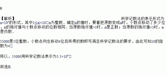 A. 55×103 B. 5.5×104 C. 5.5×105 D. 0.55×105